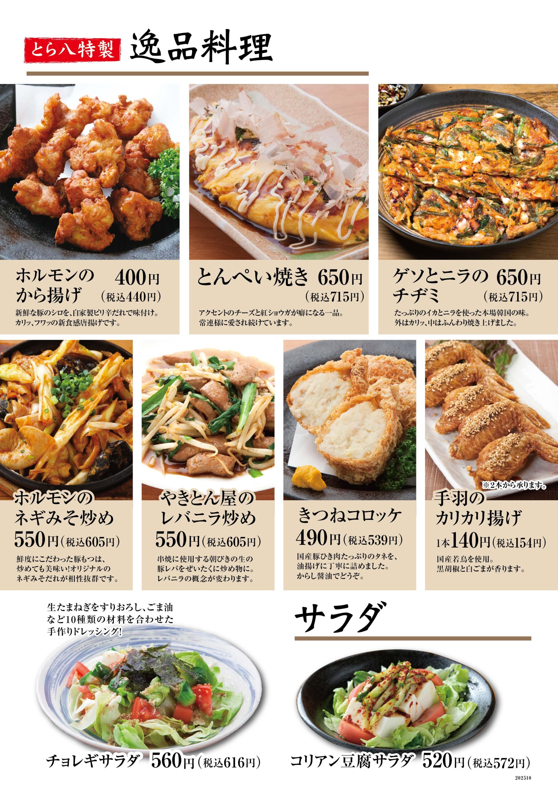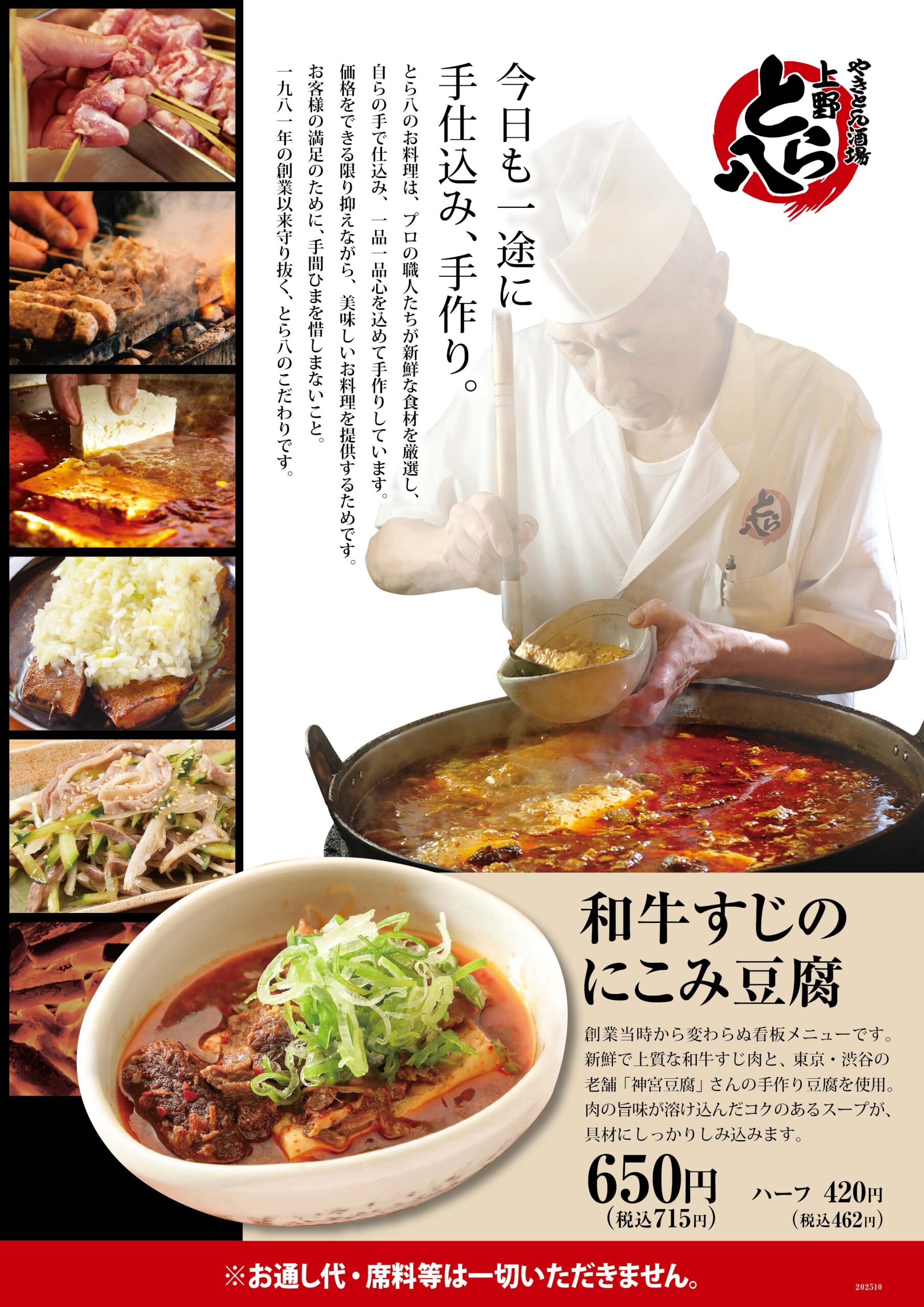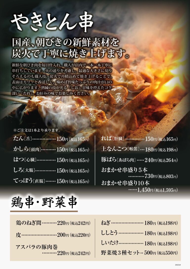 朝びきもつを熟練の技で焼き上げる炭火やきとんをはじめ、心を込めた手作り料理でおもてなしいたします。